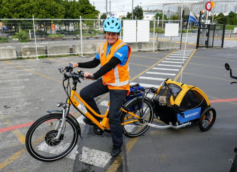 Auckland Council is one of those smart businesses that has invested in fleet bikes and importantly, on training and assessment to get more people introduced to ebikes in a way that they are safe and find the experience enjoyable. At one of those ‘encounters’ a discussion started with Meg Page (Electricmeg) and Liz Brooks, Senior Regional Advisor for Hauraki Gulf Biosecurity about possible ways to move the dogs and handlers around the city in a more sustainable but still safe way. Detector dogs are trained to sniff out predators, in this case to get and keep Hauraki Gulf Islands predator free. In practice, this means the Sealink vehicle ferries to Waiheke and Great Barrier Island and the passenger ferries to Waiheke and other islands. Sometimes inspecting house removals and other high-risk movements.
